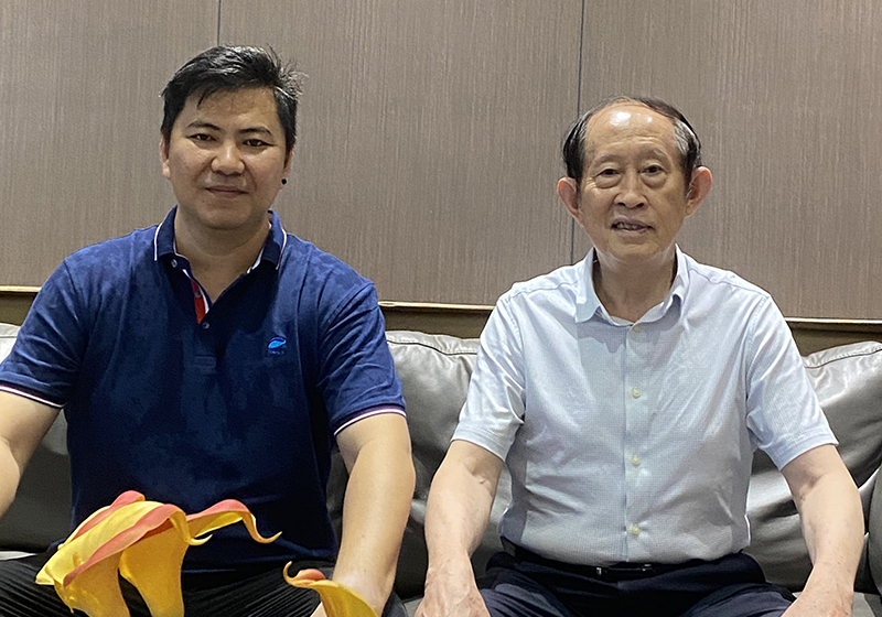 2022年6月,百家講壇主持人王立群教授及夫人參觀海玻集團,與總經理孫瑋合影