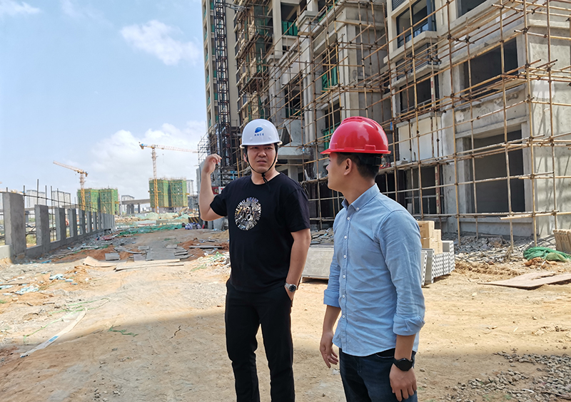 海玻建設副總經理楊劍華(左一)與項目經理一行人到海口十里春風項目檢查指導工作