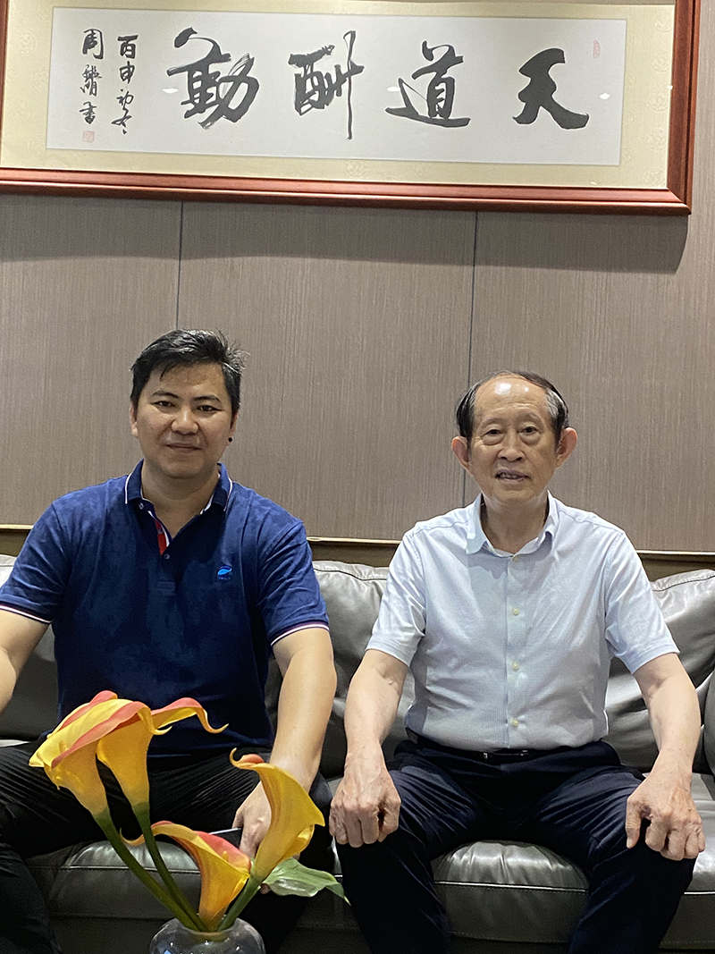 2022年6月,百家講壇主持人王立群教授及夫人參觀海玻集團,與總經理孫瑋合影。