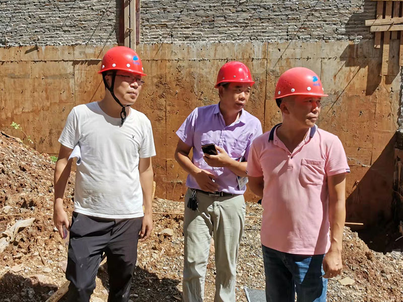 海玻建設(shè)副總經(jīng)理?xiàng)顒θA(左一)與項(xiàng)目經(jīng)理一行人到海口十里春風(fēng)項(xiàng)目檢查指導(dǎo)工作
