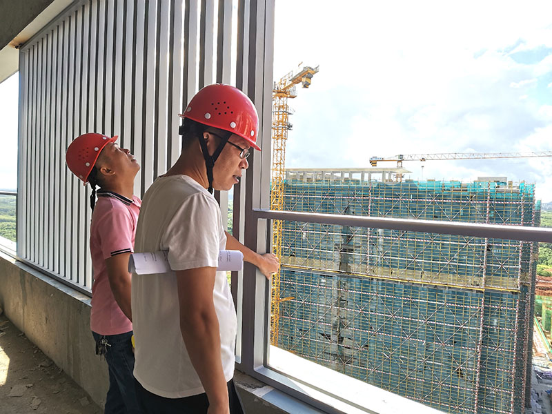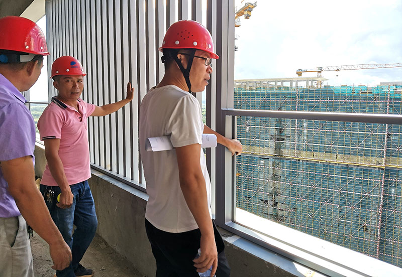 海玻建設(shè)副總經(jīng)理 楊劍華(左一)與項(xiàng)目經(jīng)理一行人到海口十里春風(fēng)項(xiàng)目檢查指導(dǎo)工作。